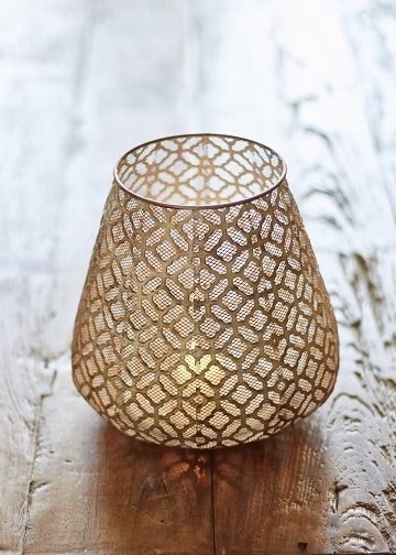 Lantern in dark red gold finish & filigree pattern - glass insert