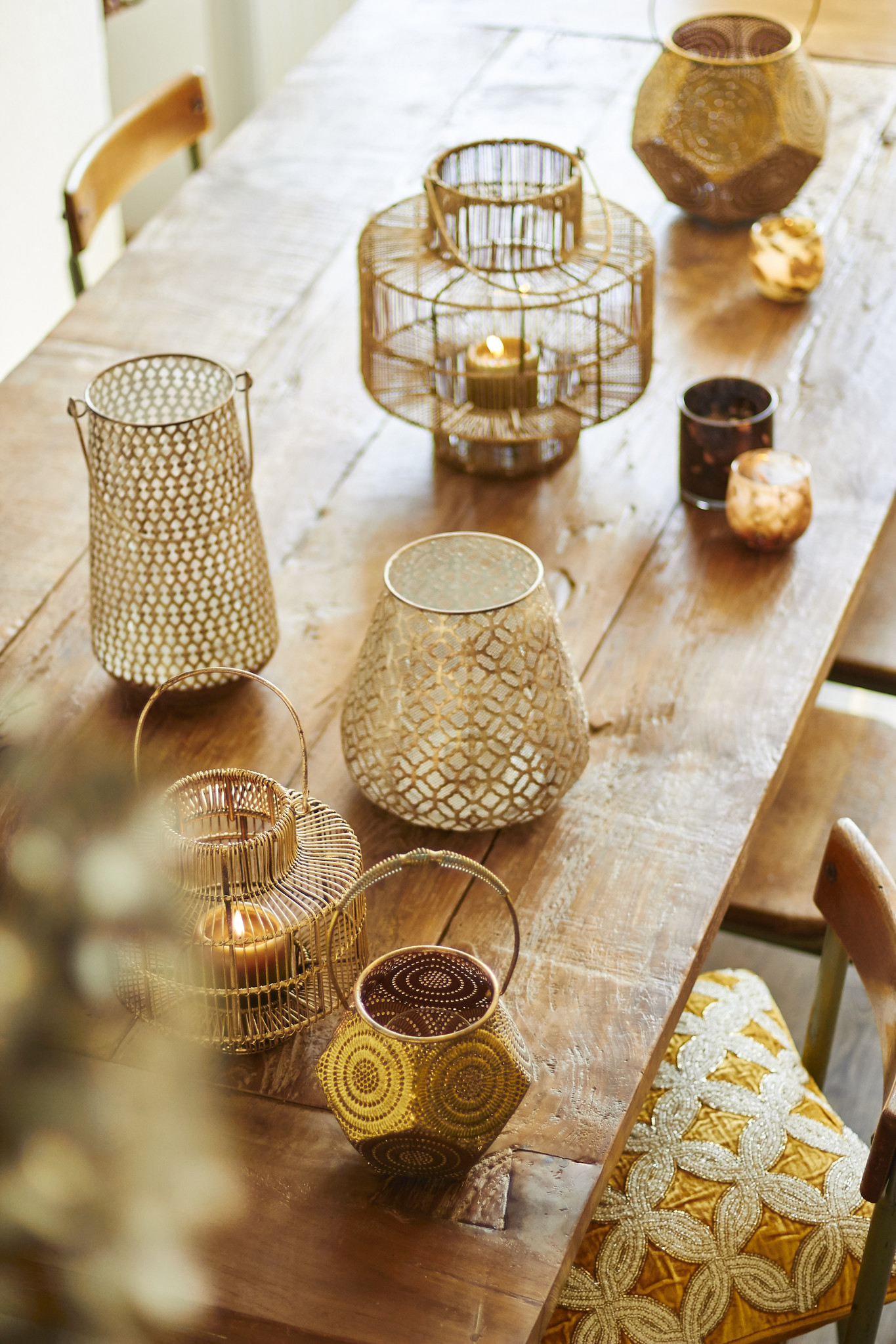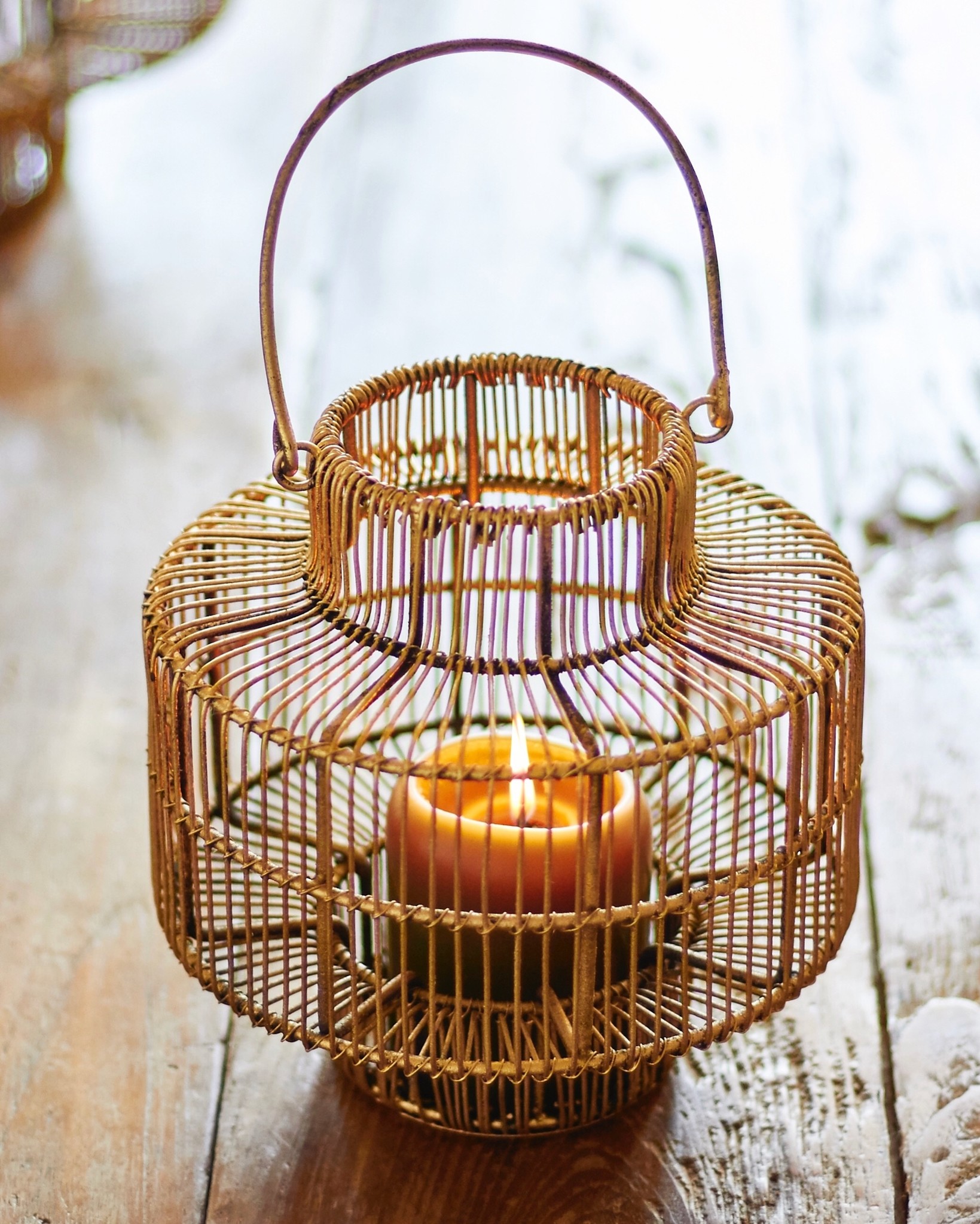 Lantern in antique gold finish - glass insert